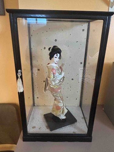 Vintage Japanese Oyama Ningyo Geisha Doll in Glass Display Case