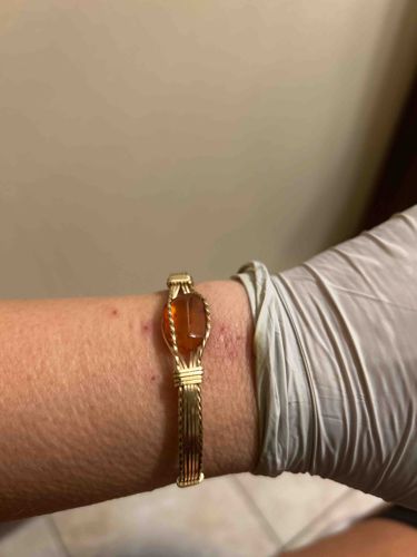 Wire-Wrapped Gold Tone Bangle Bracelet with Amber Glass Cabochon