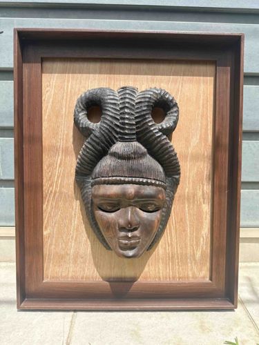 Mid-Century Modern Framed West African Style Carved Hardwood Relief Mask
