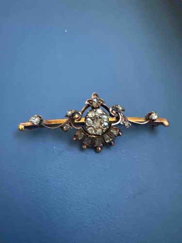 Victorian Rose Cut Diamond Bar Brooch