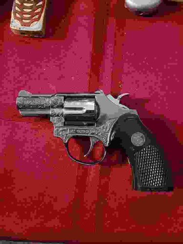 Engraved Snub-Nose Revolver (Likely Blank Firing or Replica)