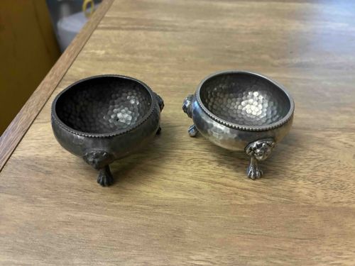 Pair of Antique Hammered Silver Open Salt Cellars