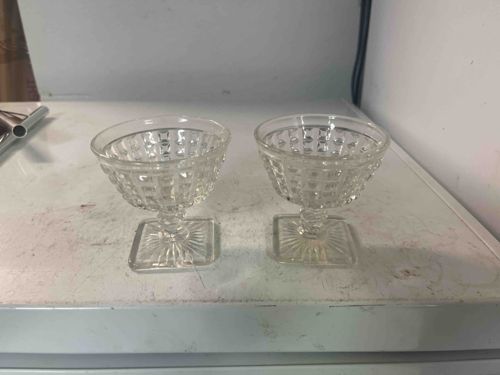 Pair of Depression-Era Cube Pattern Pressed Glass Pedestal Sherbet Cups
