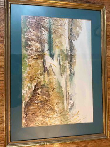 Framed Impressionist Landscape Watercolor