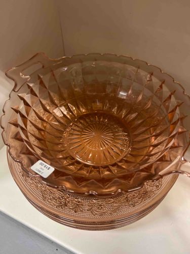 Pink Marigold Carnival Glass Bowl and Plate Set