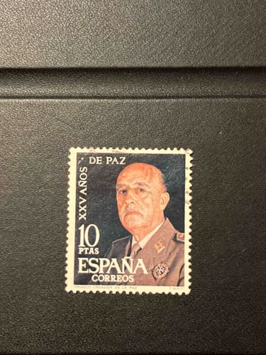 1964 Spain 10 Pesetas Francisco Franco 'XXV Años de Paz' Postage Stamp