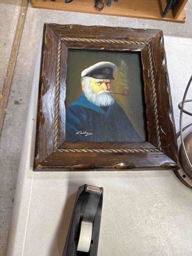 Velvet Painting of a Sea Captain Smoking a Pipe