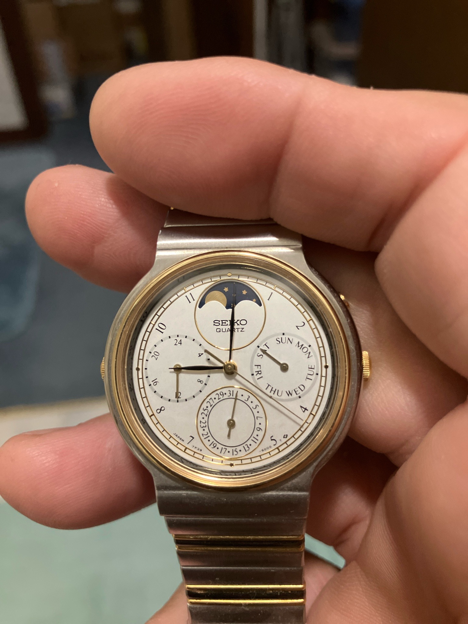 Vintage Seiko Quartz Moon Phase 7F39-6000 Calendar Watch