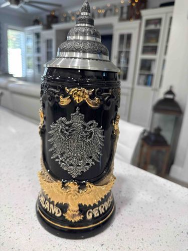 Modern German Eagle Coat of Arms Beer Stein with Pewter Lid