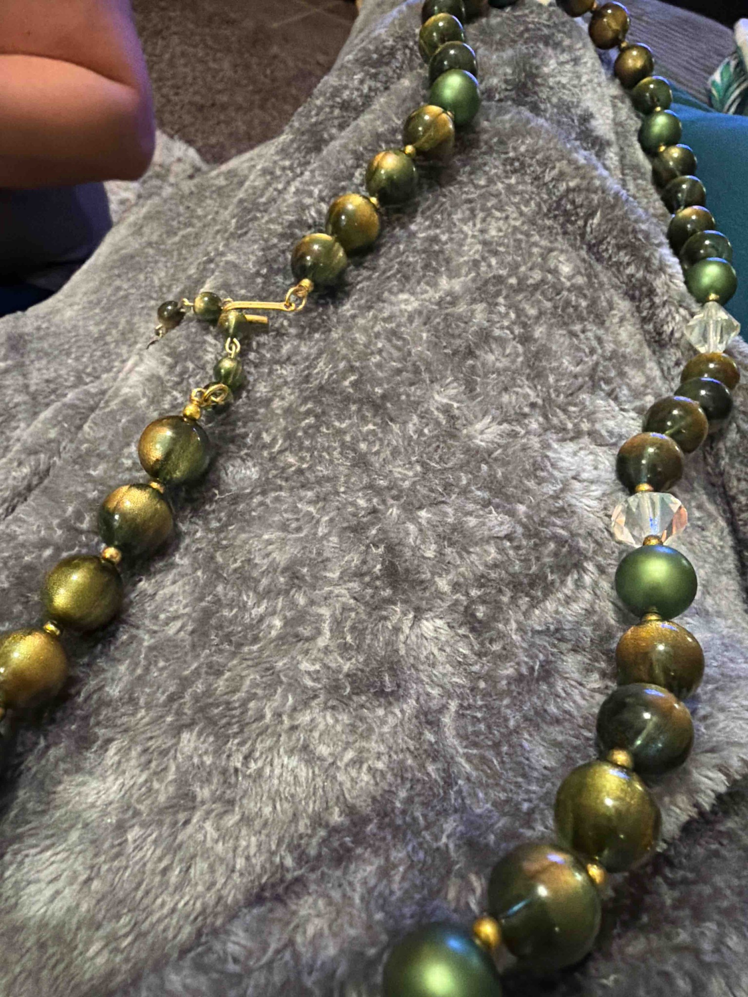Vintage Multi-Tone Green and Gold Venetian Style Glass Bead Necklace