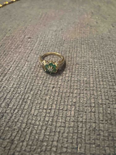 14k Yellow Gold Natural Emerald and Diamond Flower Cluster Ring