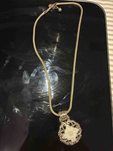 Vintage Carved Mother-of-Pearl Floral Pendant on Wheat Chain