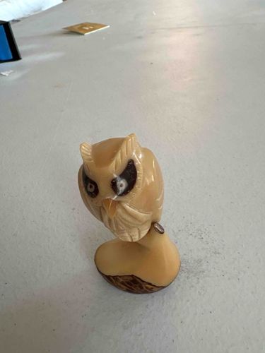 Hand-Carved Bovine Bone or Tagua Nut Owl Figurine