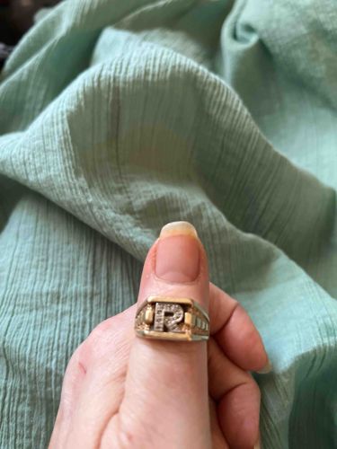 Two-Tone Initial 'R' Signet Ring with Melee Diamonds