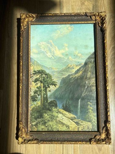 Early 20th Century Alpine Landscape Chromolithograph in Victorian-Style Gilt Frame