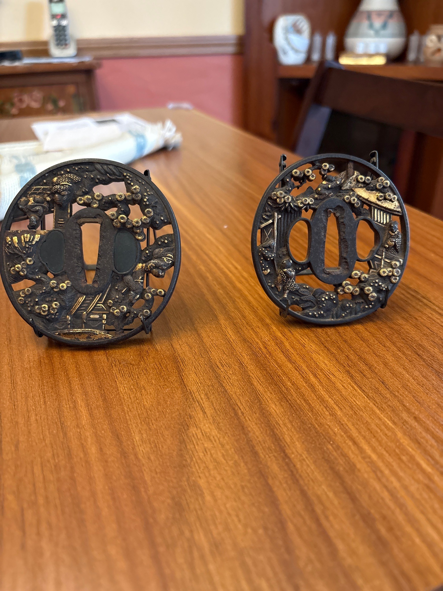 Japanese Edo Period Shakudo Tsuba Pair (Sword Guards)