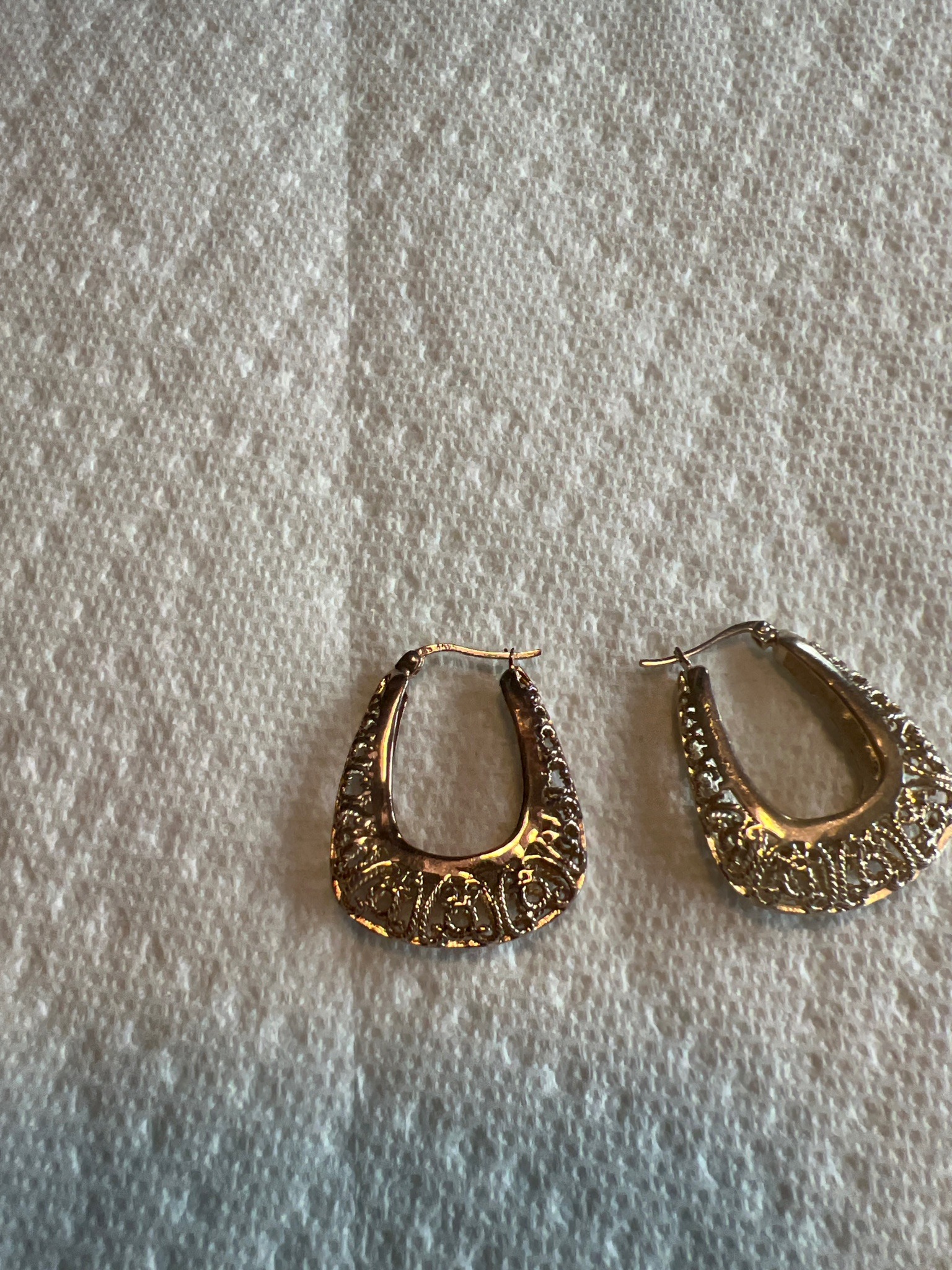 Gold-Tone Filigree Teardrop Hoop Earrings