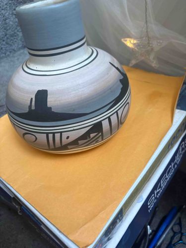 Contemporary Navajo (Diné) Hand-Painted Monument Valley Pottery Vase