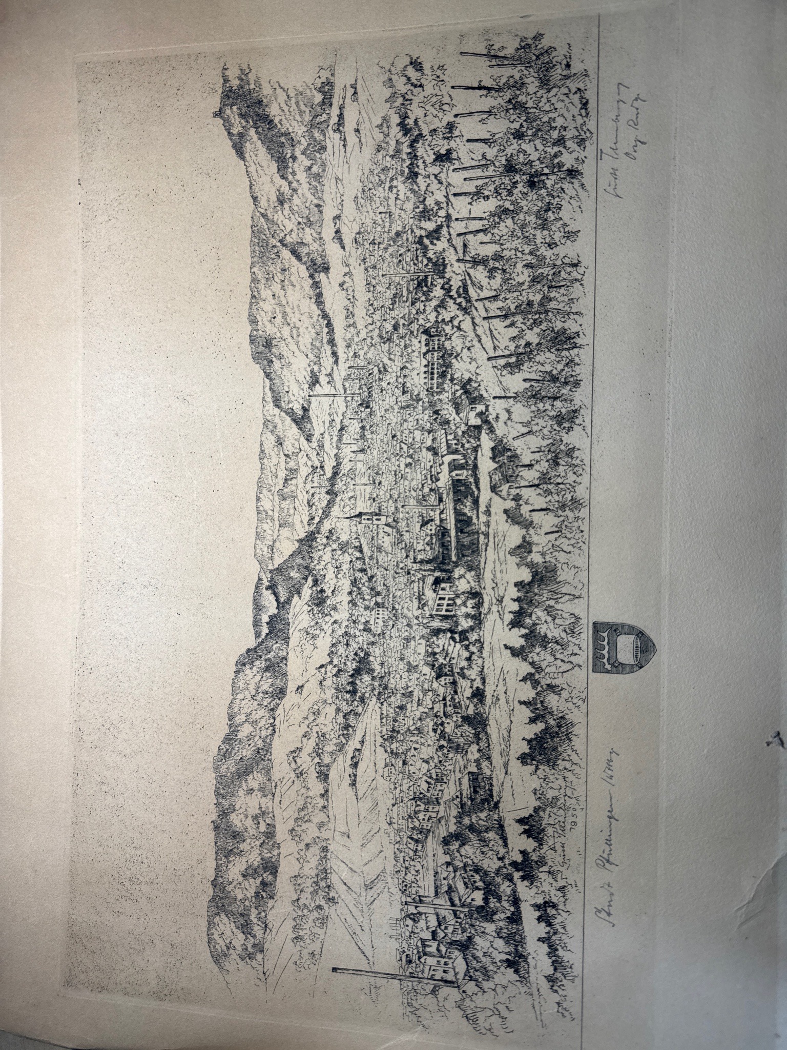 Etching or Lithograph of Pfullingen, Germany by Fritz Thurnher