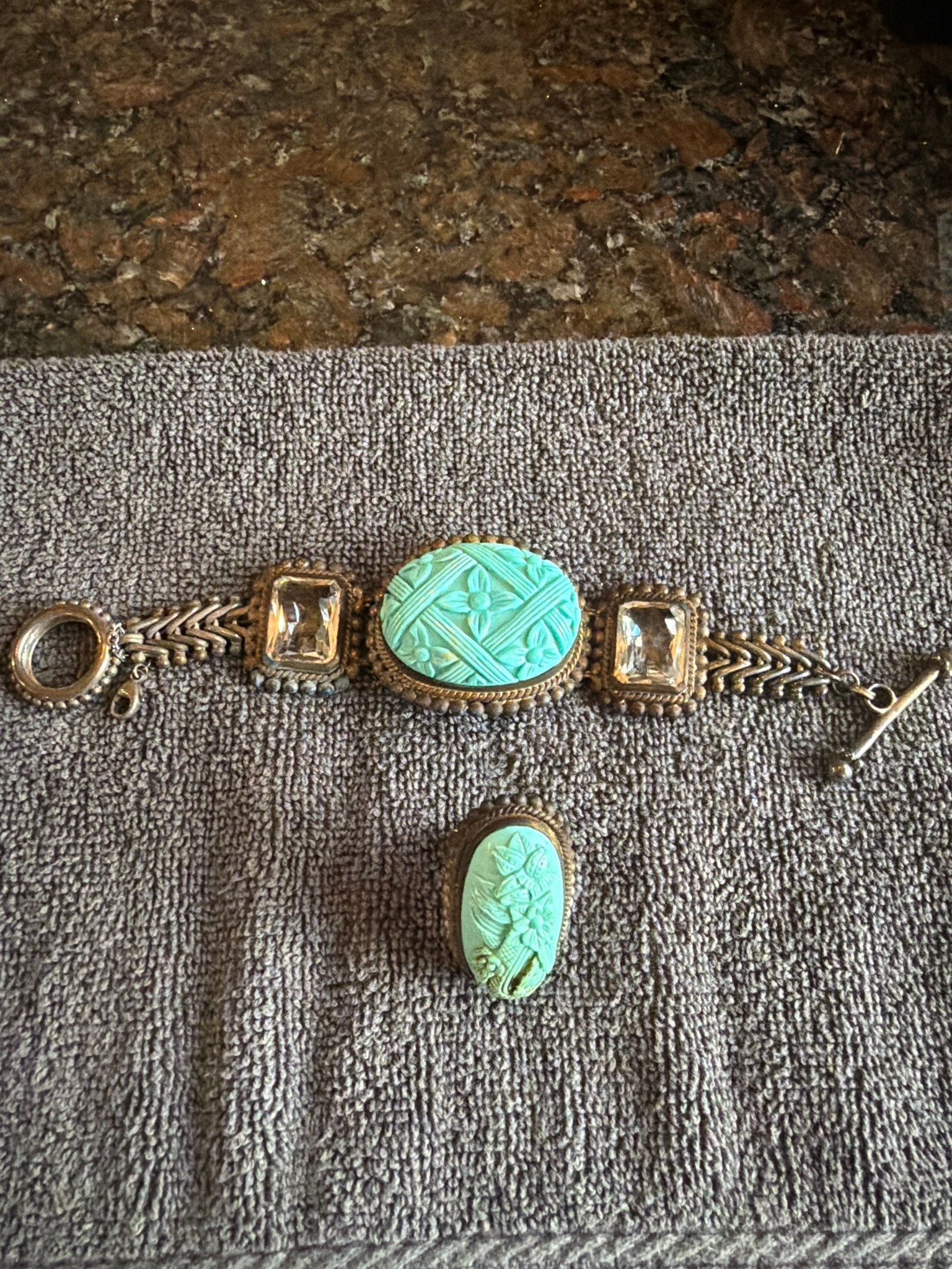 Stephen Dweck Bronze and Carved Turquoise-Tone Gemstone Bracelet and Ring Set
