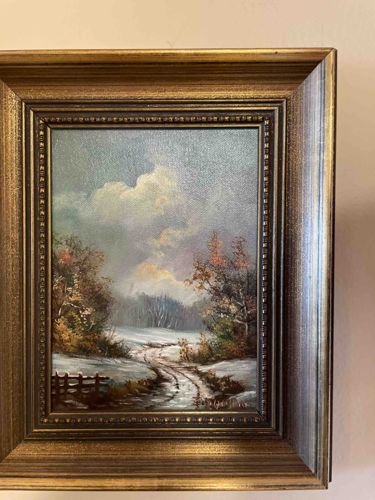 Framed Winter Landscape Oil Painting