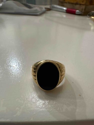 Gold Signet Style Ring with Oval Onyx Inlay