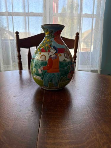Hand-Painted Folk Art Ceramic Vase in the Style of Desimone