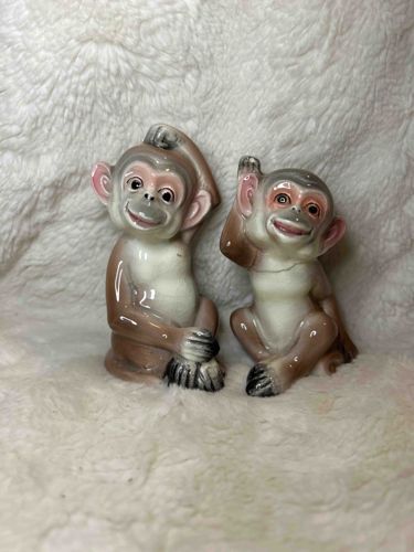 Vintage Anthropomorphic Ceramic Monkey Salt and Pepper Shakers