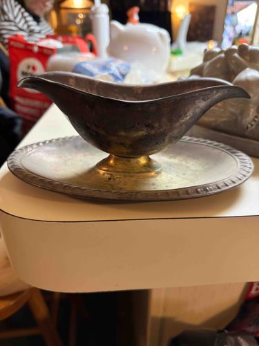 Vintage Silver-Plated Pedestal Gravy Boat with Attached Underplate