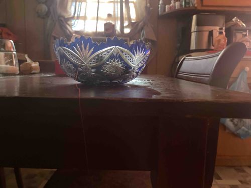 Cobalt Blue Cut-to-Clear Lead Crystal Bowl