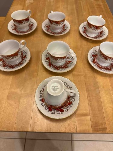 Charter Collection 'Richelieu' Red/Rust Cups and Saucers Set