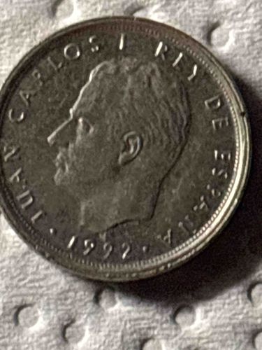 This item is a 1992 Spanish 5 Pesetas coin featuring the left-facing profile of King Juan Carlos I. Constructed from a bronze-aluminum alloy, the coin displays a characteristic dull gold or yellow-metal hue consistent with its metallic composition. The obverse features the circular legend 'JUAN CARLOS I REY DE ESPANA' along with the mintage year '1992' positioned at the bottom. Physically, these coins typically measure 17.5mm in diameter with a weight of approximately 3 grams and feature a smooth edge. The craftsmanship reflects the industrial standards of the Fabrica Nacional de Moneda y Timbre (FNMT), the Royal Mint of Spain. In terms of condition, the specimen shows visible signs of circulation including surface oxidation, dark spotting (toning), and minor abrasions on the high relief points of the King's portraits. There is a noticeable patina across the fields of the coin, and some slight rim dings are visible. This specific issue belongs to the modern numismatic period of Spain prior to the adoption of the Euro in 2002. While it is a common circulation strike, it remains a distinct historical artifact representing the Spanish monarchy in the late 20th century.