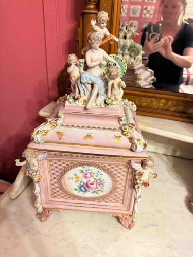 Antique Capodimonte Style Hand-Painted Porcelain Jewelry Casket