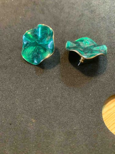 Vintage Green Enamel Organic Wavy Stud Earrings