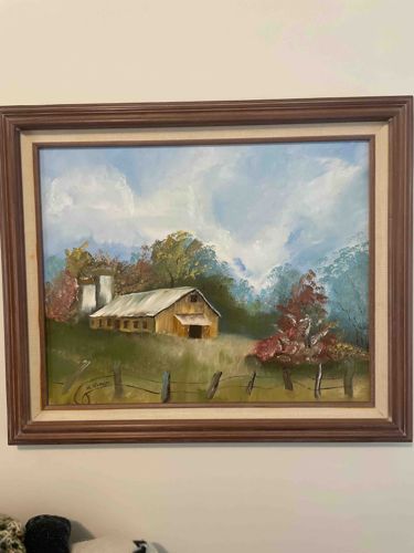 Autumnal Rural Barn Landscape Oil Painting