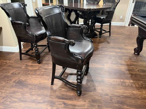 Leather and Cane Inset Bar Height Armchair