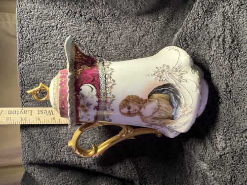 Royal Vienna Style Portrait Ewer with Maroon and Gold Accents