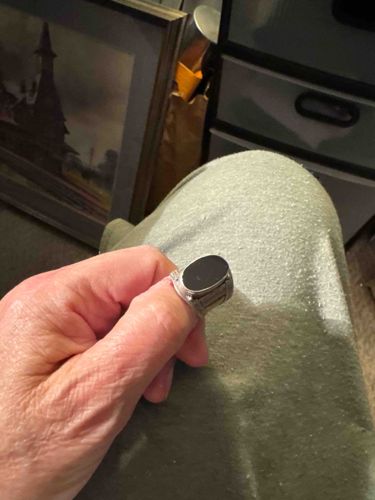 Men's Vintage Silver-Tone Black Onyx Cabochon Signet Ring