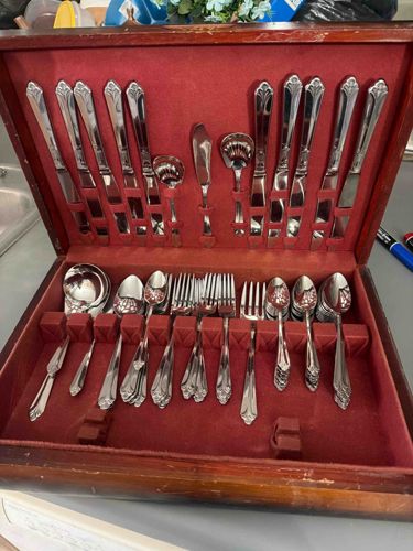 Stainless Steel Flatware Set in Commemorative Wooden Chest