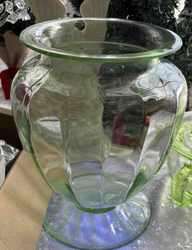 Tiffin Glass Green Uranium Glass Footed Vase