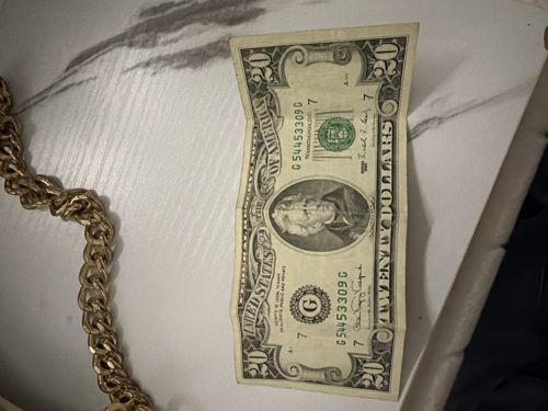 This is a United States twenty-dollar bill from the Series 1990 design cycle, featuring the portrait of Andrew Jackson on the obverse. The note is printed on standard currency paper composed of 75% cotton and 25% linen, displaying the characteristic off-white or light cream color with embedded red and blue security fibers. The design is a 'small head' style, predating the large-portrait redesign of 1996. It features the green Department of the Treasury seal on the right side and the black Federal Reserve Bank seal for Chicago (indicated by the letter 'G' and number '7') on the left. The serial number G54453309C is printed in green ink twice. The signatures of Treasurer Catalina Vasquez Villalpando and Secretary of the Treasury Nicholas F. Brady are present, confirming the Series 1990 designation. Regarding condition, the note exhibits significant circular and vertical creasing from previous folding, notably a sharp vertical center crease and various surface wrinkles. There is visible edge wear and slight rounding of the corners, suggesting it has been in active circulation. No major tears, stains, or ink defacements are visible in the image. This piece represents the high-quality intaglio printing process typical of the Bureau of Engraving and Printing, characterized by sharp line work and complex lathe-work borders.