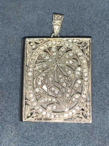 Art Deco Style 18k White Gold Filigree Diamond Locket Pendant
