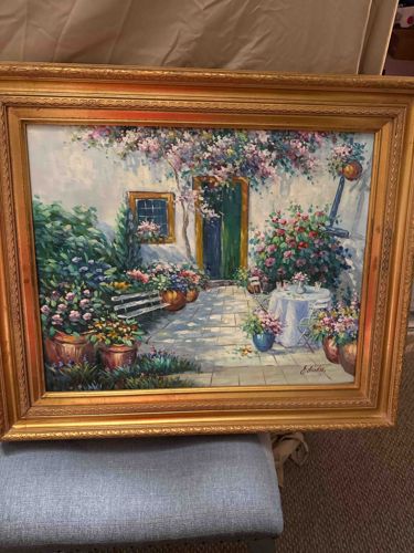 Impressionistic Courtyard Oil Painting signed by C. Duke