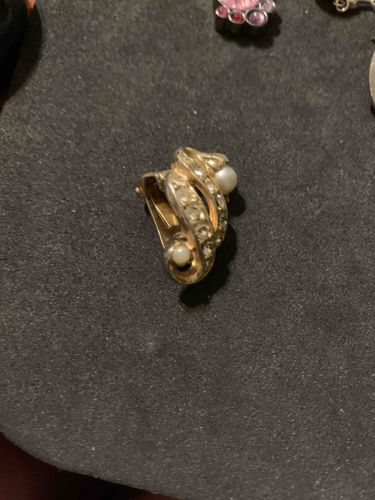 Vintage Gold-Tone Rhinestone and Faux Pearl Clip-On Earring
