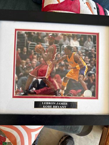 Framed Action Photograph of LeBron James and Kobe Bryant