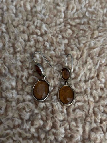 Vintage Silver-Tone Citrine or Amber Drop Earrings