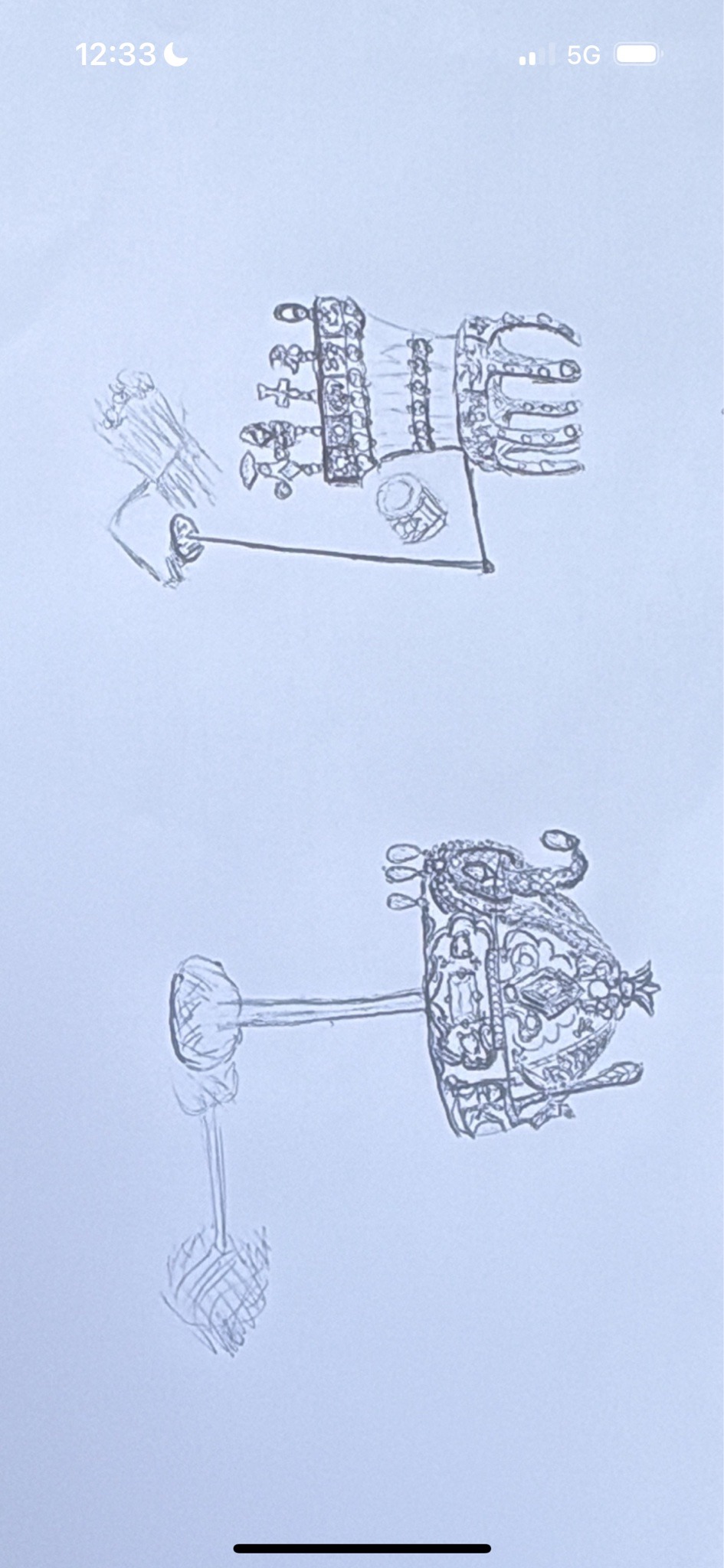 Original Graphite Sketches of Ornate Ceremonial Crowns