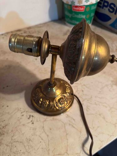 Vintage Embossed Brass Student or Desk Lamp