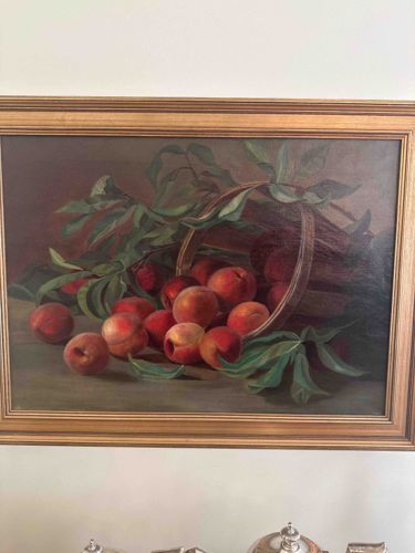 Still Life Oil Painting of Peaches in a Basket