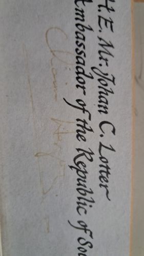 Calligraphic Inscription referencing Ambassador Johan C. Lotter